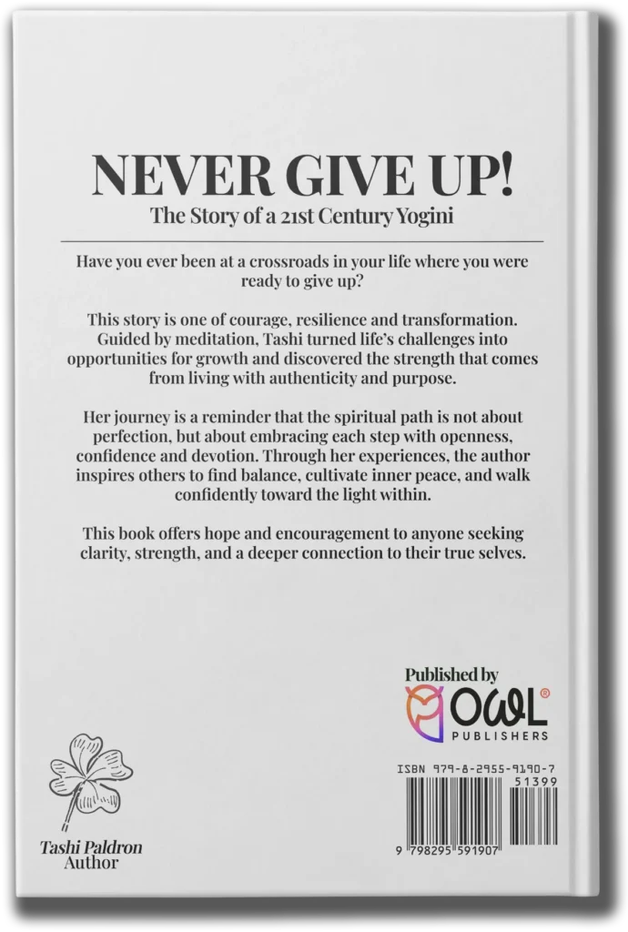 Tashi Paldron writes from lived experience. A life shaped by spiritual longing, discipline, karmic questions, and profound devotion to the Dharma.